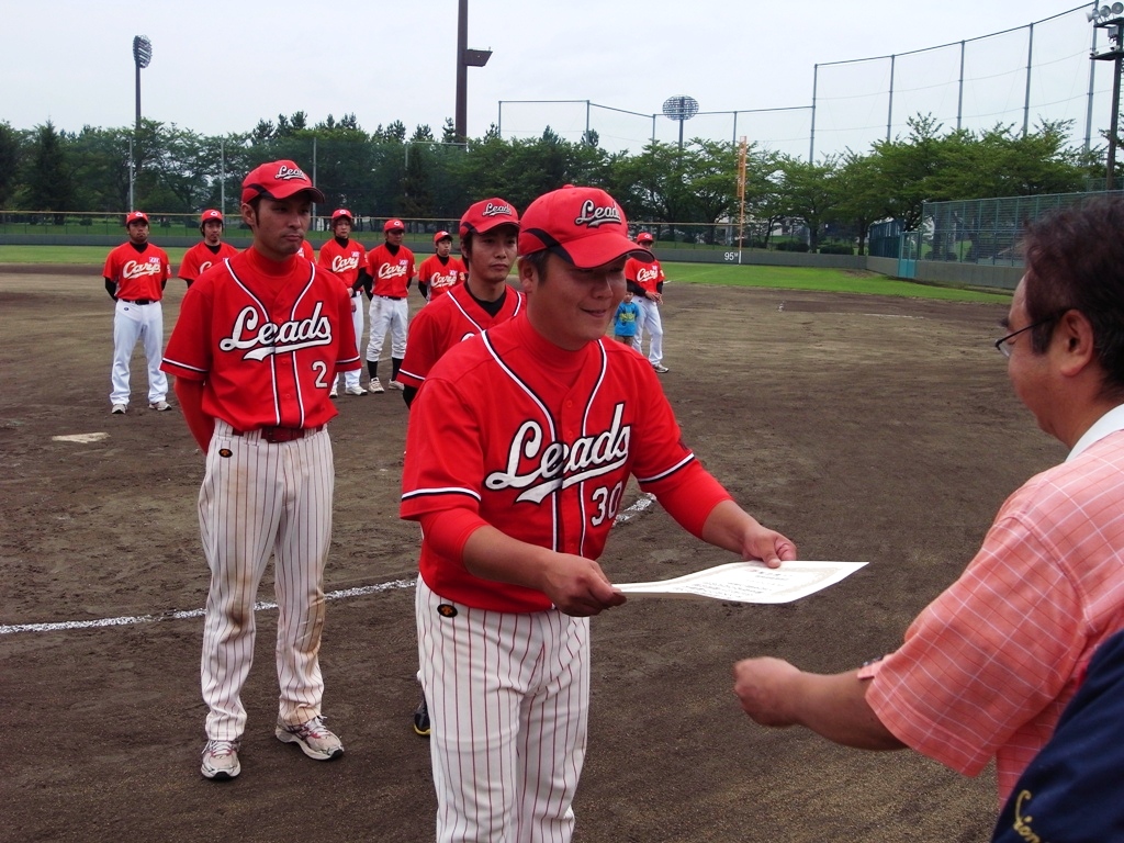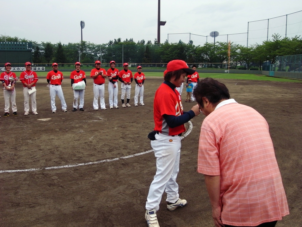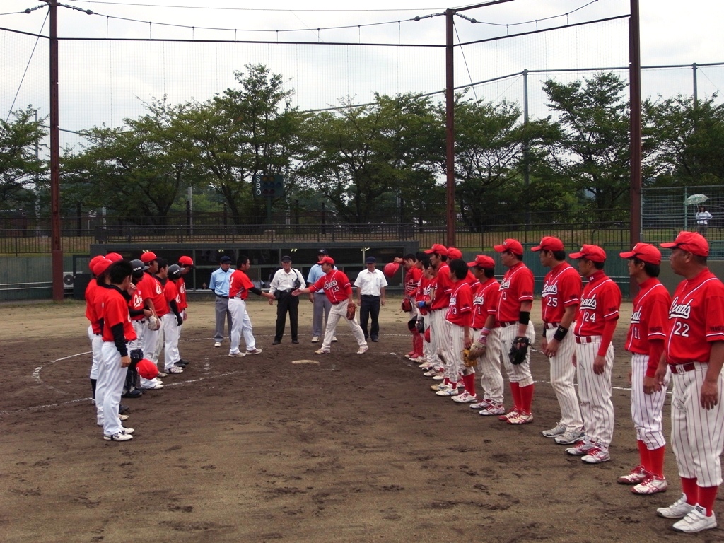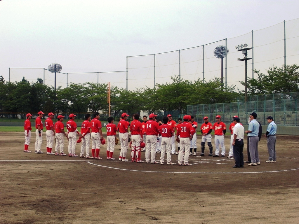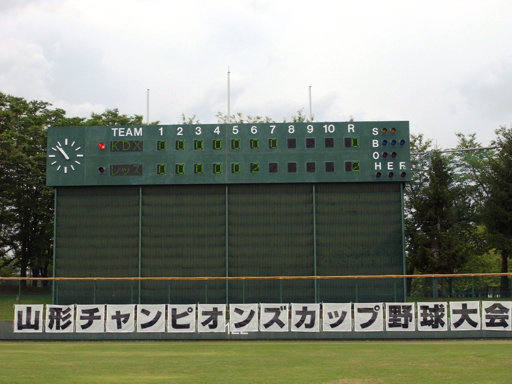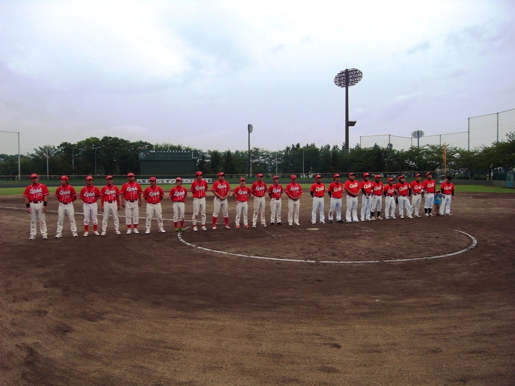 9月23日(日)、第9回山形チャンピオンズカップ野球大会決勝戦が、天童総合運動公園野球場にて、午前9:15より開始され、先攻「KDX-CARP」vs後攻「レッズ」での熱戦が繰り広げられました。