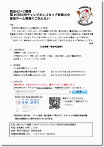 今年度も下記要項にて、「第10回山形チャンピオンズカップ野球大会」参加チームを募集致します。